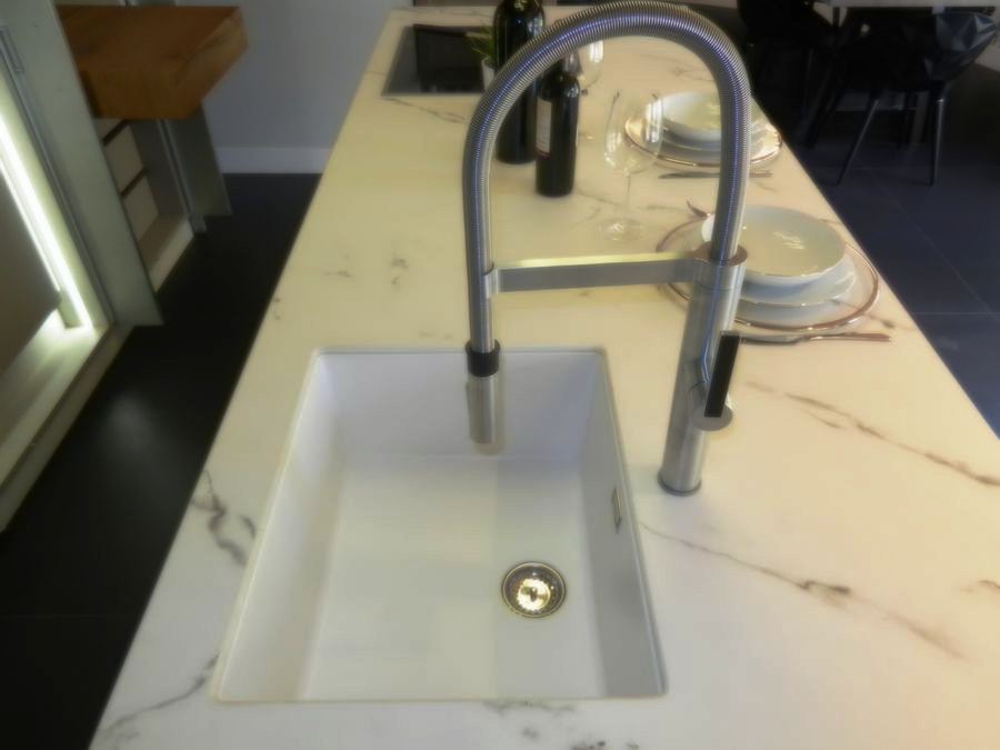 cocina foodshelf exposicion fregadero shock y grifo blanco
